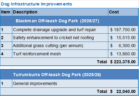 16.1.... Response to Notice of Motion - Enhancing infrastructure for dogs in Lane Cove - Update................................................................... 116